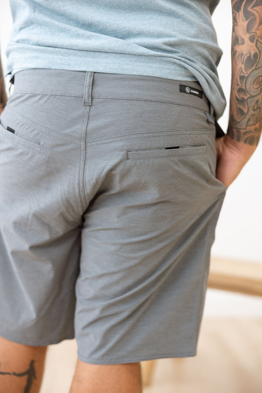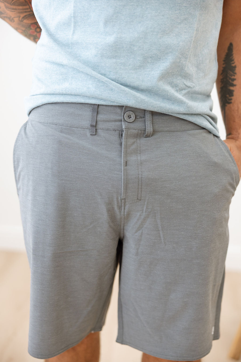 Ready for the wild, built for the everyday. The Walker Board Shorts are your new favorites—versatile enough for the trail, sharp enough for town. Crafted from a 4-way stretch microfiber blend (74% polyester / 18% cotton / 8% elastane), these hybrid board short walkers hit slightly above the knee for a clean, modern fit. They feature: