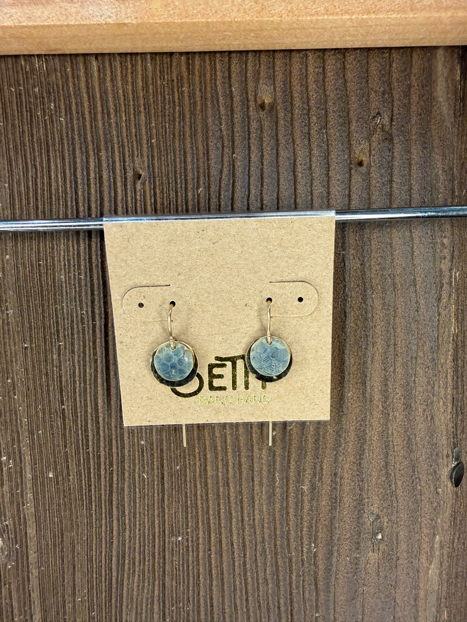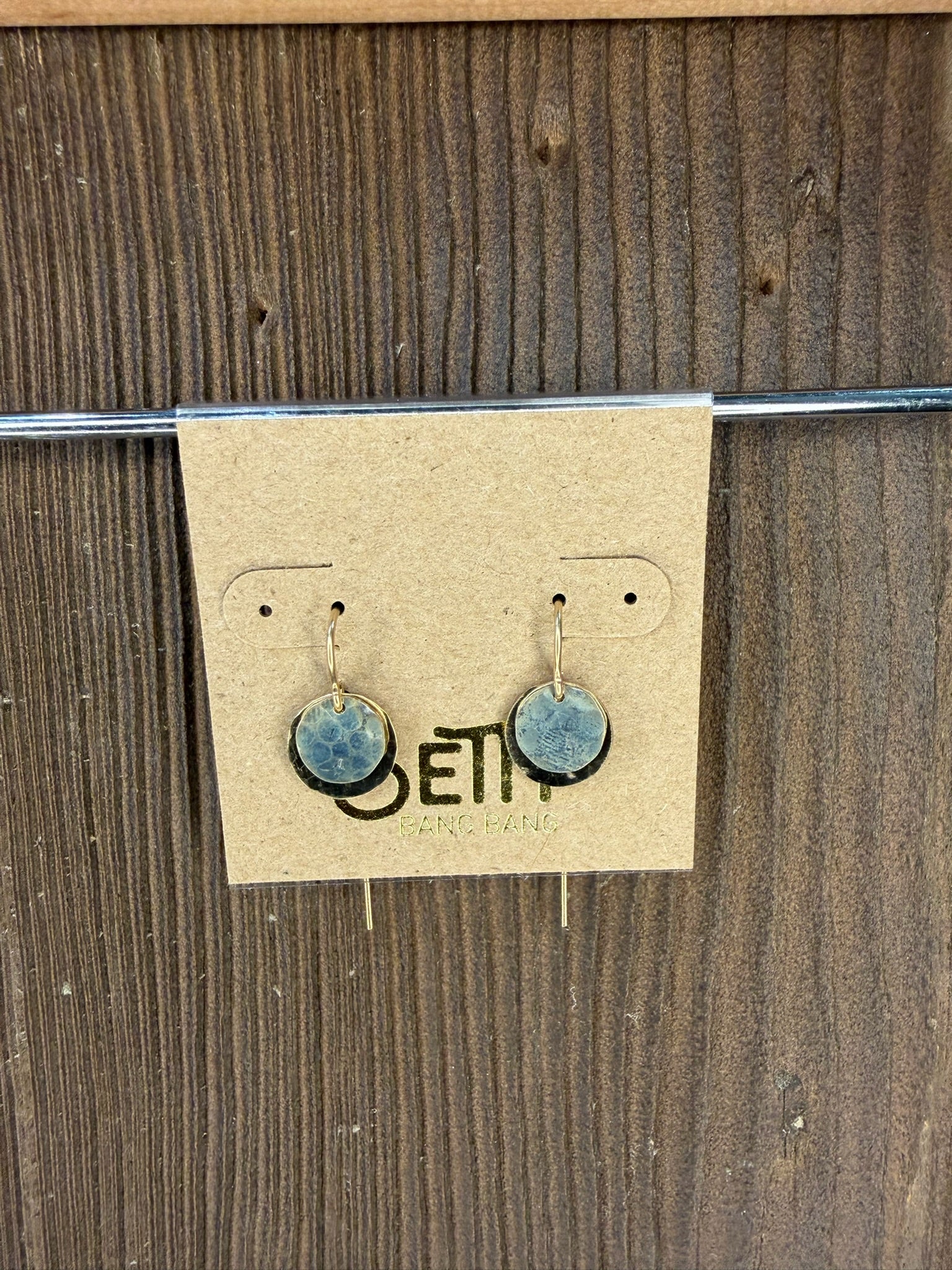 Two-tone mixed metal threader earrings with hammered disc drop. Nickel free and safe for sensitive ears. Lightweight for comfortable extended wear.